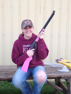Travis, the guy who rents our farmhouse (like an older extra brother), got me a new toy for my birthday! I'm practicing with it until Jeff teaches me how to shoot the big kid guns.